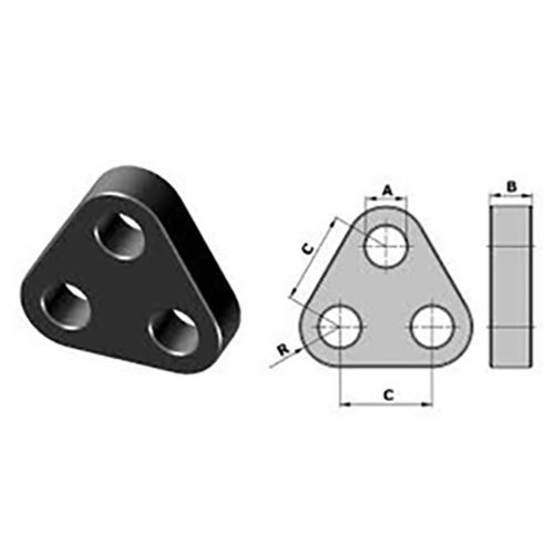 Delta plate or Triangle plates are used to make towing bridles. The towing rope form the vessel is connected to the top hole and 2 ropes are connected out from the bottom holes. The material is heavy duty MS and is tested to 125% of SWL.